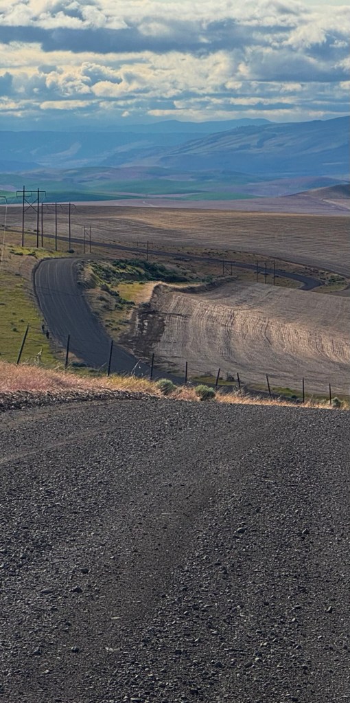I chased Shannon for almost two days through non-stop wind near the end of the Outback. After crossing Ochoco NF, whenever I arrived at a town and I mentioned where I had been and where I was going, someone would tell me “Oh yeah! There’s a gal ahead of you – she was here just yesterday.” After that I began to notice fresh tracks in the dirt roads.